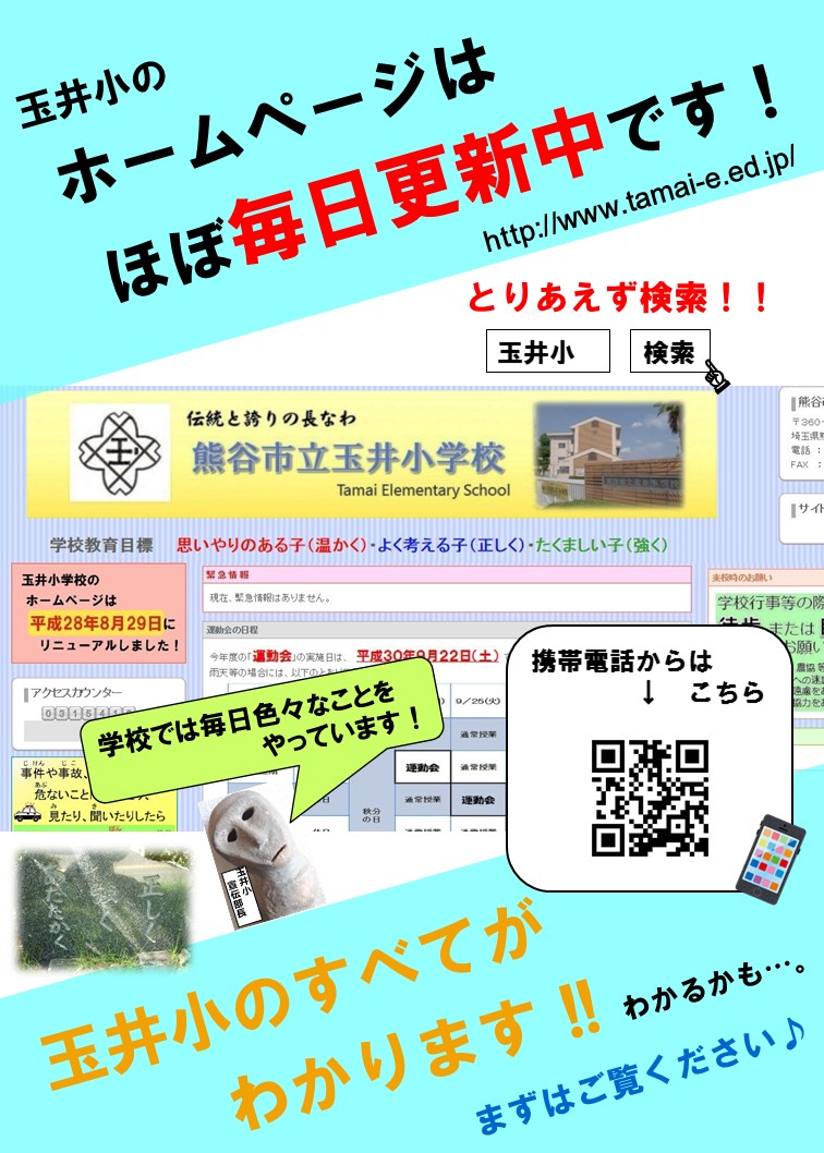 携帯電話でも玉井小学校のホームページがご覧いただけます。