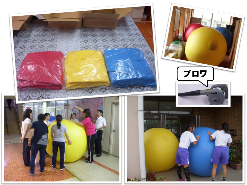 大玉に空気を入れるのもブロワを使っての大仕事です。