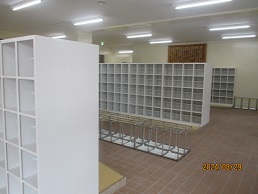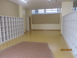 <昇降口>下駄箱が大きくなり、長靴も入りそうです
