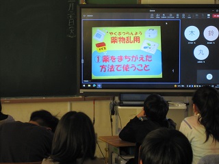 覚醒剤や大麻など、法律で禁止されている薬物の恐ろしさなどについての指導をしていただきました。