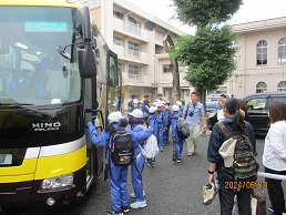 今日から5年生は1泊2日で林間学校です。行き先は赤城山方面です。朝は小雨が残り、天候が心配されますが、今後は止むとの予報。子供たちは、元気いっぱい出発式を行い、笑顔で林間学校に向けて出発しました。