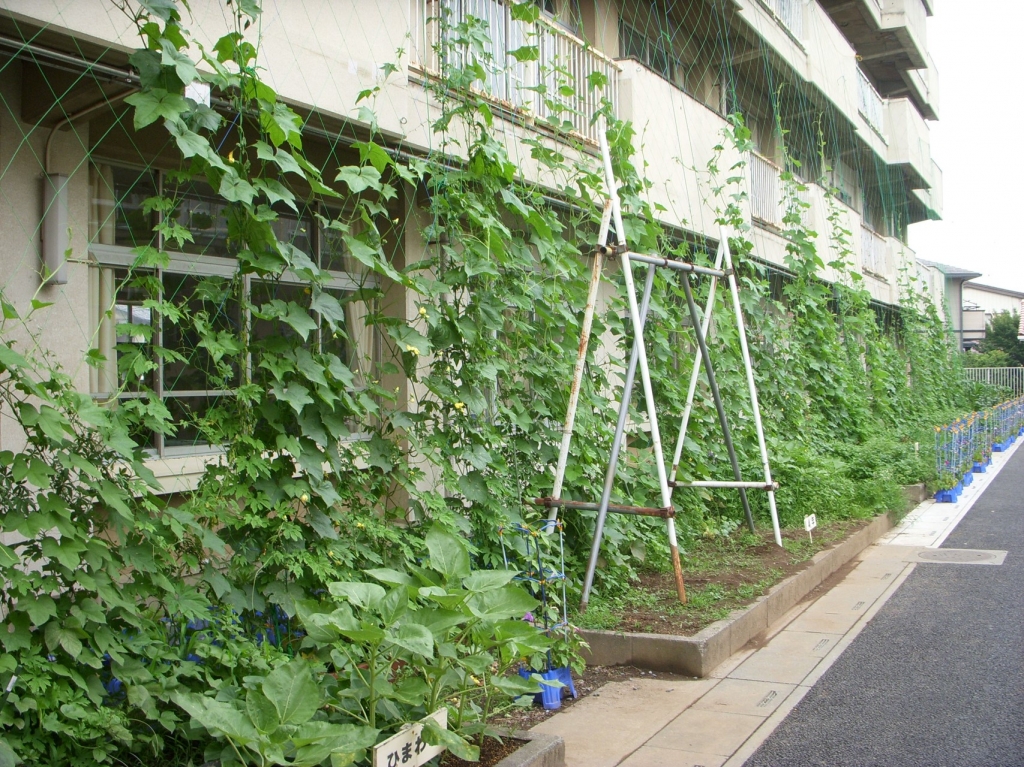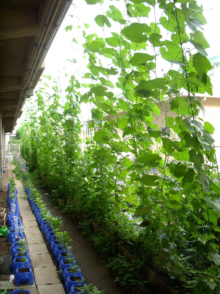グリーンカーテンもだいぶ伸びてきました。今から楽しみですね!