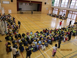 2校時に通学班会議を行い、来年度に向けて、通学班の人数や集合時刻、新班長や新一年生の確認等を行いました。帰りは、体育館で全体確認をした後、一斉下校で安全に下校しました。