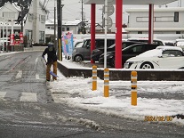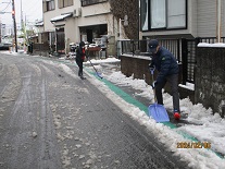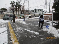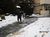 児童の安全の確保のため、職員が雪かきを行いました。