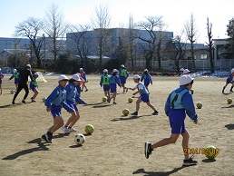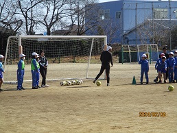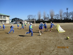 県のサッカー協会から派遣していただいたコーチの方々から、楽しくサッカーを教えていただきました。4年生の子供たちは、夢中になってボールを追いかけていました。