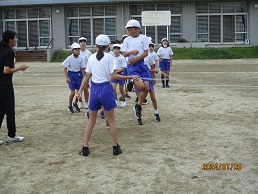 校舎改修に伴い、校庭の広さがこれまでよりも制限されてしましましたが、今朝も全校児童で元気よく長なわ跳び(8の字とび)にチャレンジしました。