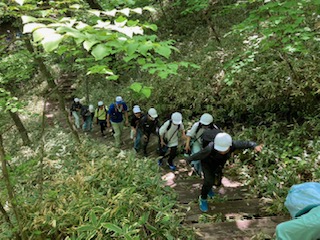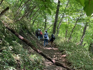 2日目は澄み渡る青空の下で、小沼に向かってハイキングです。